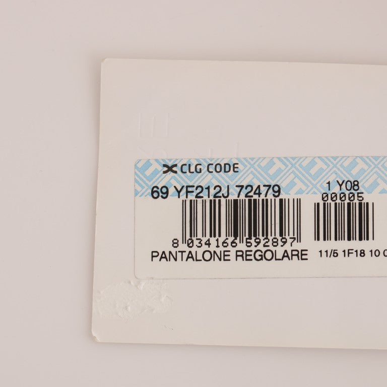 Step out in style with these exquisite GF Ferre blue cotton stretch chinos, a perfect blend of comfort and elegance. Crafted in Italy with meticulous attention to detail, these straight fit pants are an essential addition to your sophisticated wardrobe. Pair them with a crisp shirt for work, or a casual tee for a weekend look.