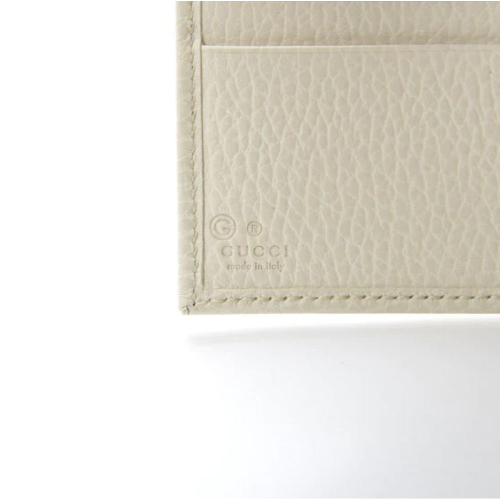 Indulge in the luxury and sophistication of a pristine ivory white leather wallet from the esteemed house of Gucci. This bifold wallet seamlessly combines functionality with elegance, featuring a dedicated card holder and a secure coin purse. Accented with a tasteful silver metal logo, it exemplifies Italian craftsmanship at its finest. Compact yet spacious, it measures at 12cm x 11cm x 3cm, fitting comfortably in your hand or bag.
