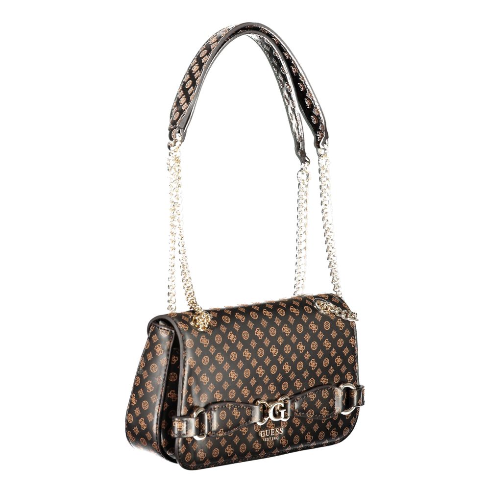 ARLENA LOGO BAG, 2 CHAIN SHOULDER HANDLES, 1 EXTERNAL POCKET, 2 INTERNAL POCKETS, INTERNAL SPACES FORMED BY CARDS, CONTRASTING DETAILS, SNAP CLOSURE, LOGO