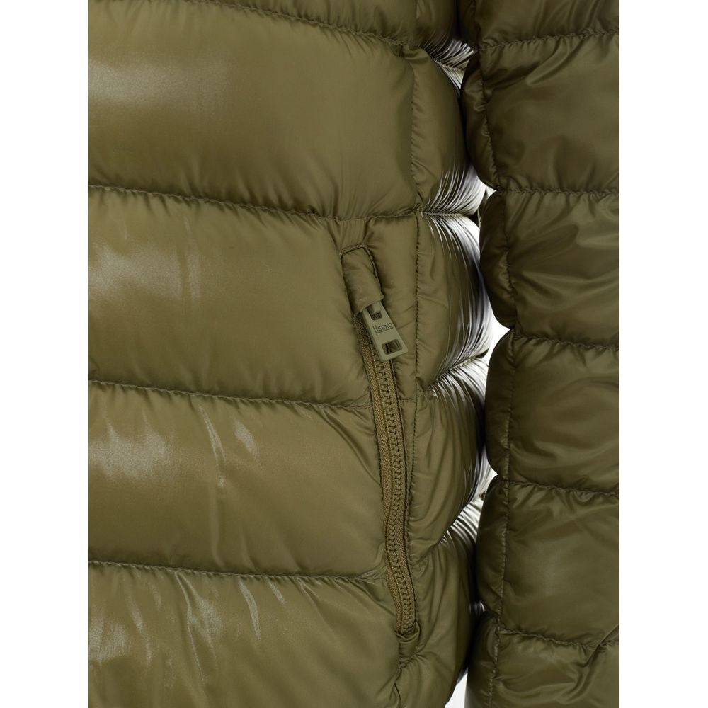 Step into the season with the epitome of elegance in this timeless green coat. Expertly crafted by Herno, this coat combines both luxury and practicality, ensuring you stay warm without compromising style. Its fine wool material offers unparalleled comfort and durability.