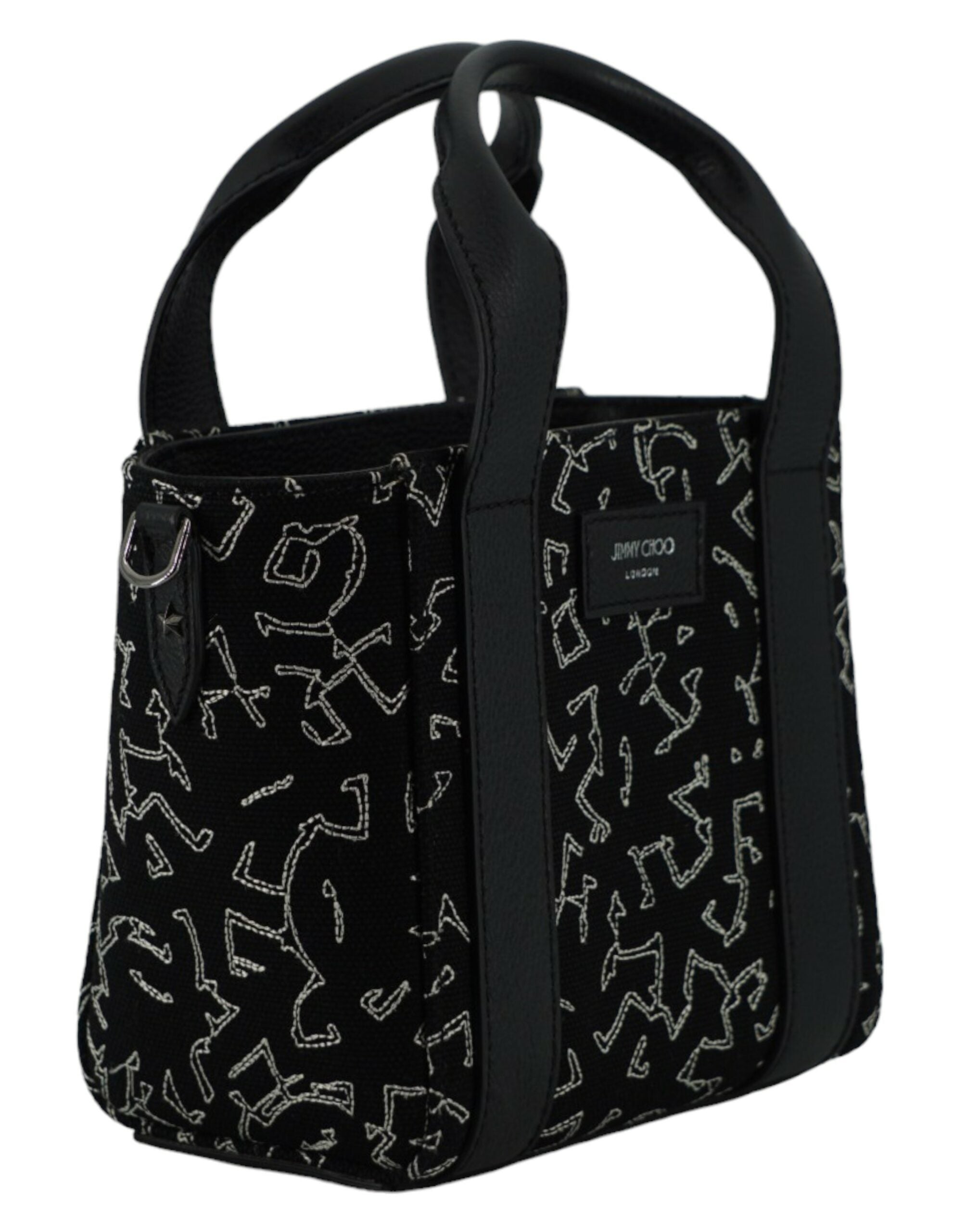 Jimmy Choo Black Leather and Canvas Small Tote Bag
