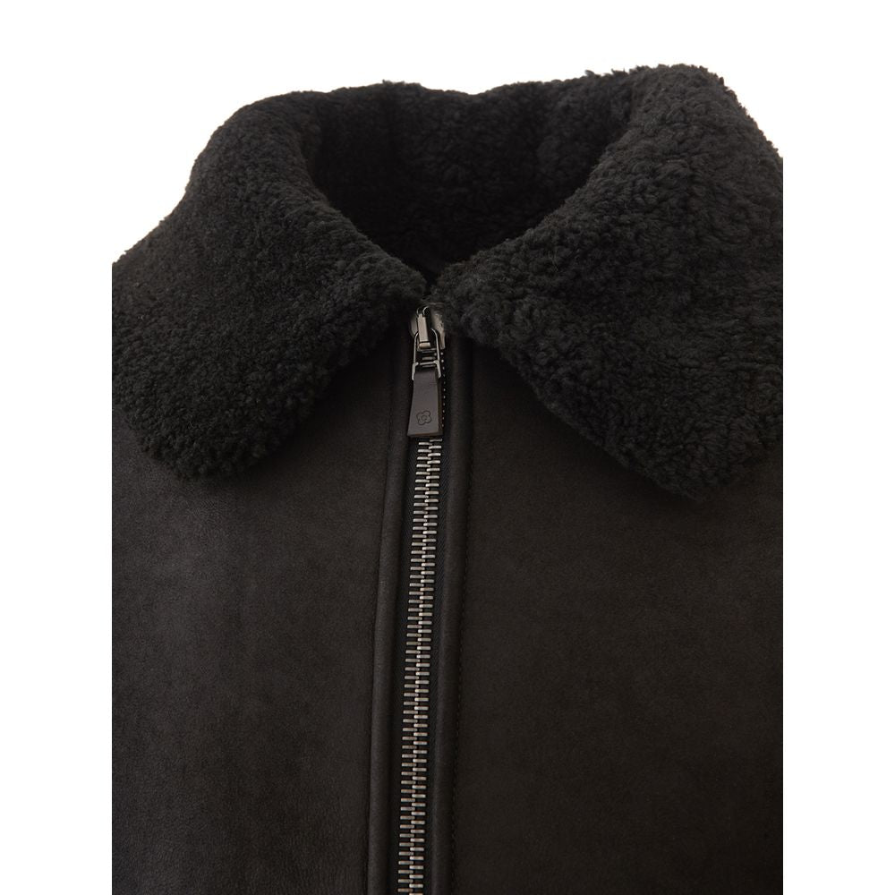Experience the epitome of Italian craftsmanship with this sophisticated Lardini Montone leather jacket. Its sleek black hue and quality construction make it a timeless addition to any discerning gentleman’s wardrobe. Perfect for elevating your style quotient while ensuring exceptional warmth and comfort.