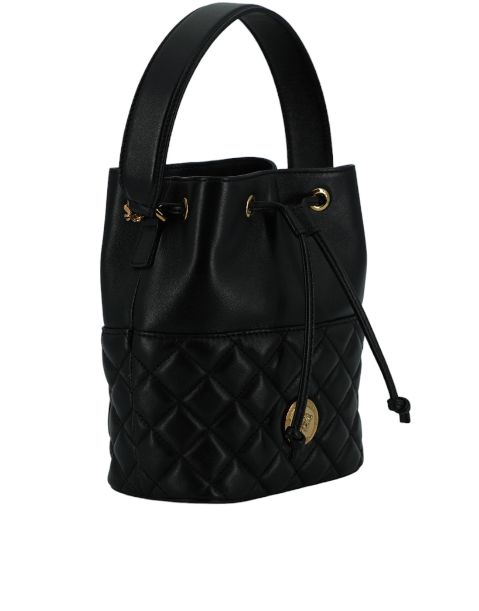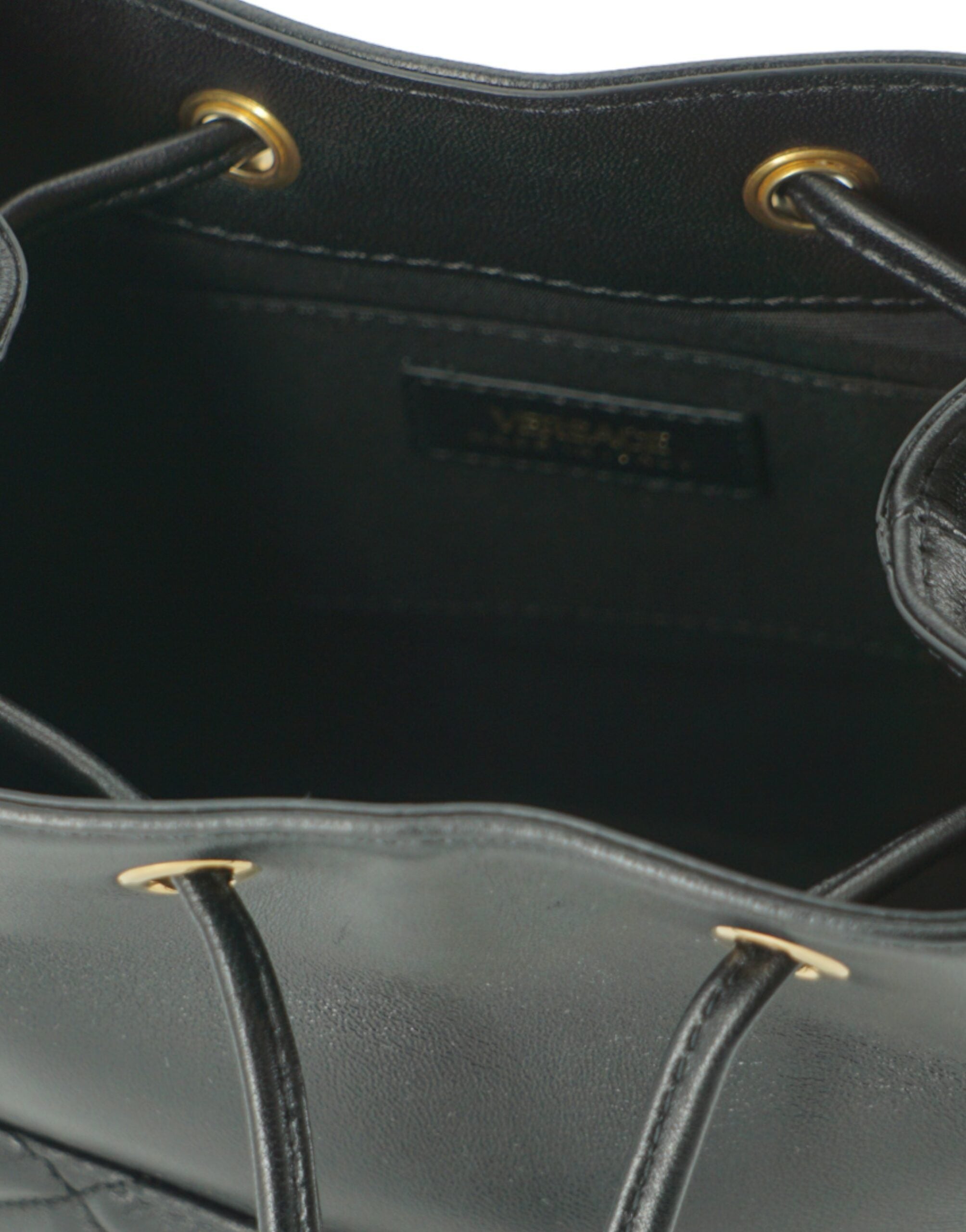 Versace Elegant Black Leather Bucket Shoulder Bag