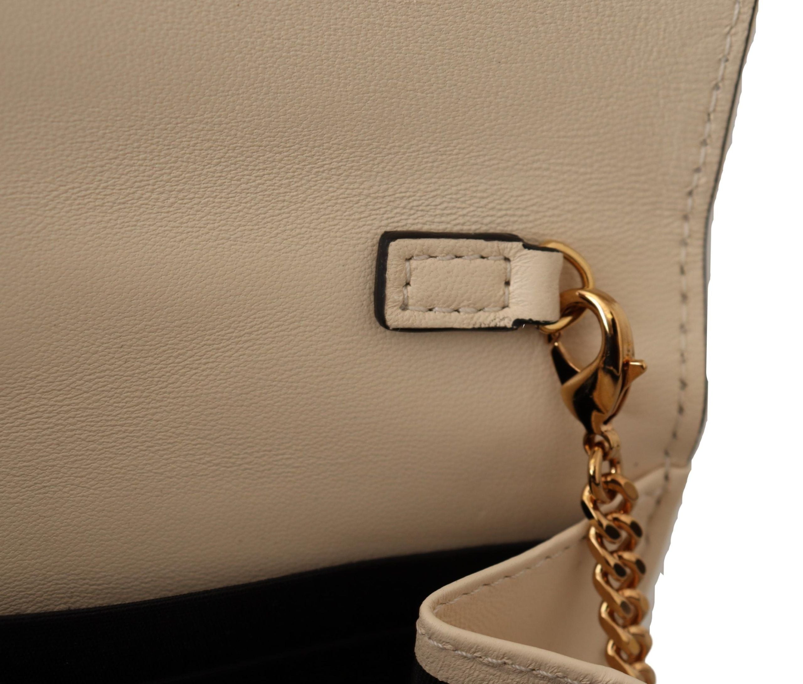 Step out in style with this stunning white evening shoulder bag crafted from the finest Nappa Leather. Versace brings you an accessory that effortlessly elevates any outfit, whether you’re attending a gala or enjoying a sophisticated night out. The chic flap snap closure is adorned with the iconic medusa head logo, adding a touch of luxury, while the interior boasts two main compartments and a zip compartment to keep your essentials organized. Complete with gold-tone hardware and a versatile removable chain shoulder strap, this bag is poised to offer elegance as a shoulder or crossbody piece.